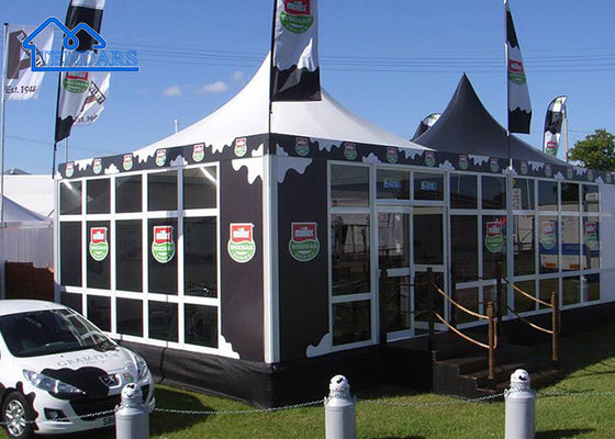 Tente de pagode extérieure avec mur en verre pour les mariages, les promotions de produits et autres événements commerciaux