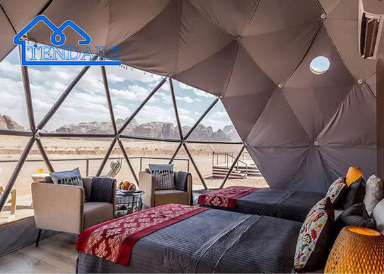 Des équipements de luxe: Les tentes glamping en dôme en polycarbonate sont conçues pour offrir aux clients une expérience luxueuse et confortable.systèmes de chauffage et de climatisation, et des meubles haut de gamme pour que les clients se sentent choyés pendant leur séjour.
