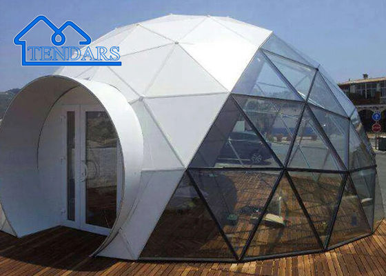 Les fenêtres transparentes surdimensionnées permettent à la lumière du soleil de pénétrer dans la salle, ce qui fournit non seulement un lien entre l'intérieur et le monde extérieur et une vue plus ouverte visuellement,mais réduit également la quantité d'éclairage artificiel pendant la journéeLes tentes à dôme peuvent souvent être érigées et démontées plus rapidement que les bâtiments traditionnels, et réutilisées encore et encore.