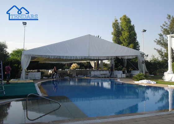 Une tente de marquage de fête, souvent appelée simplement marquage, est un type de structure temporaire utilisée pour accueillir des événements et des fêtes en plein air.Il est généralement constitué d'un cadre en métal ou d'autres matériaux robustes recouvert d'un auvent en tissu.