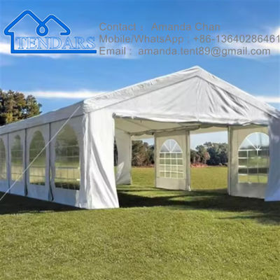 Protection contre les intempéries: Bien que les tentes de mariage offrent une atmosphère en plein air, elles offrent également une protection contre les éléments.Le tissu de la canopée est souvent fabriqué à partir de matériaux durables et résistants aux intempéries tels que le polyester ou le PVC., offrant un abri contre le soleil, la pluie, le vent et d'autres conditions météorologiques.