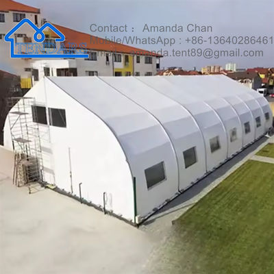 Une tente de rangement en courbe est une structure temporaire avec un toit incurvé, adaptée au stockage en entrepôt en plein air.ou des matériaux tout en offrant une protection contre les éléments.