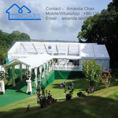 Marquises à étirements clairs: Connues pour leur construction robuste et leur polyvalence, les marquises à encoches transparentes ne possèdent pas de poteaux internes, ce qui permet une disposition intérieure flexible.Ils sont souvent utilisés pour des événements plus importants en raison de leur stabilité et de leur espace..